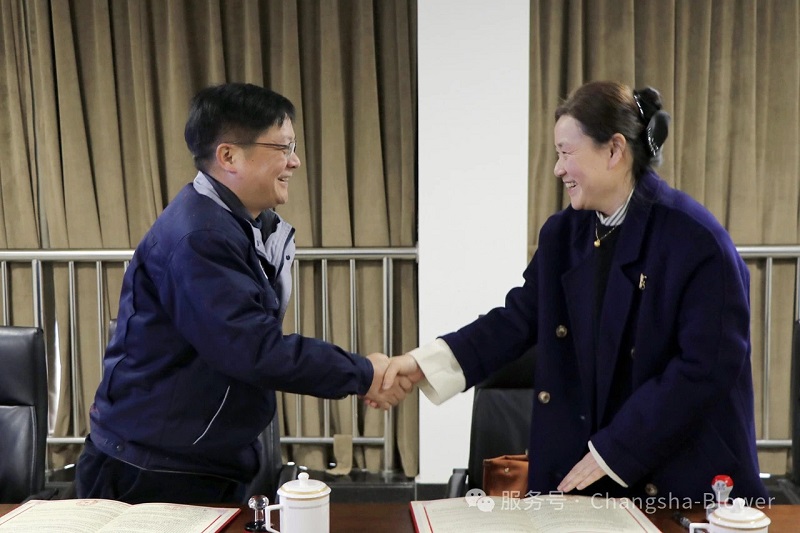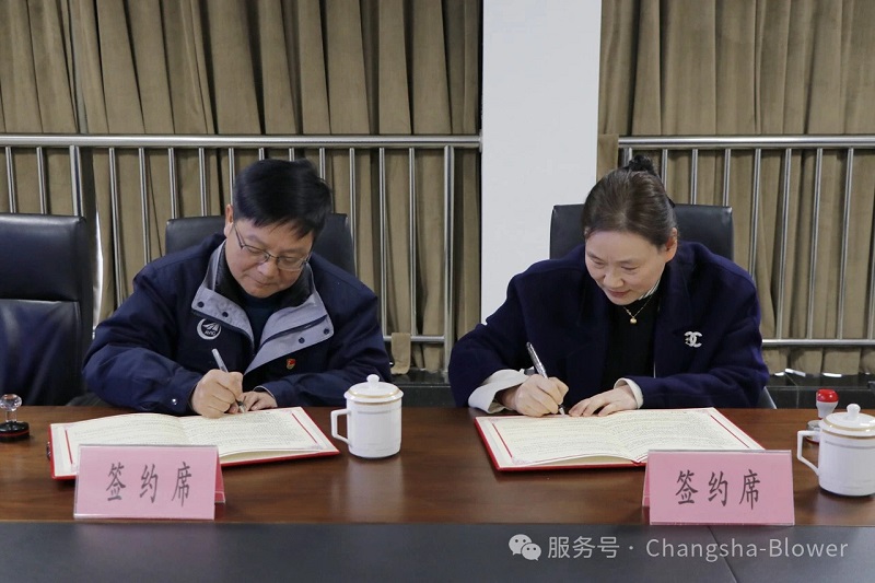 2025年2月19日,长沙鼓风机厂有限责任公司(以下简称 “长鼓公司”)与湖南透博工业设计有限公司(以下简称 “透博公司”)在长鼓公司 310 会议室隆重举行战略合作签约仪式,标志着双方正式携手,开启深度合作的新篇章。此次合作旨在充分整合双方优势资源,将离心鼓风机、离心通风机产品创新设计与企业品牌发展紧密结合,为双方在各自领域的发展注入全新动力。签约仪式由长鼓公司党委书记、董事长陈双胜主持。